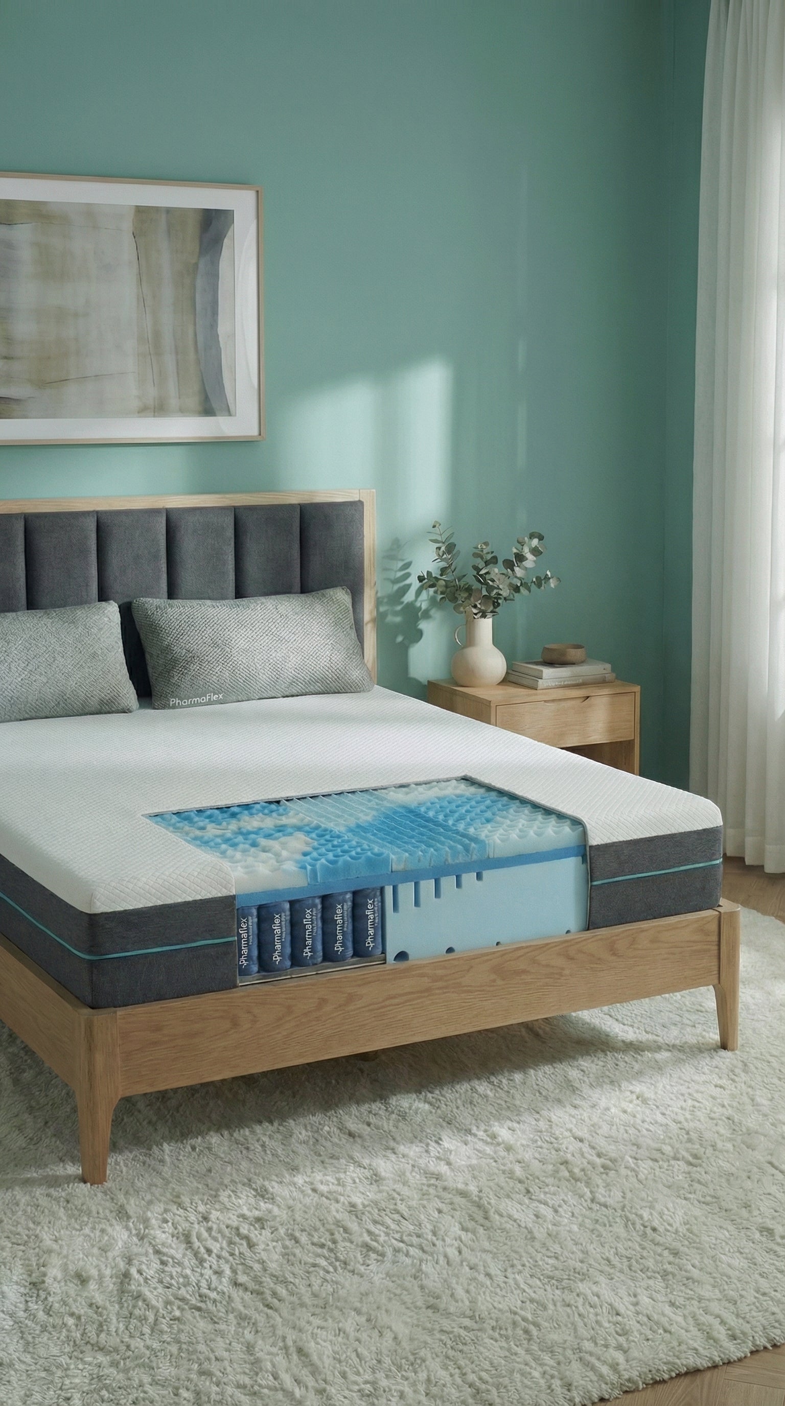 Il memory iGel ad alta ventilazione favorisce una dispersione rapida del calore e dell’umidità, mantenendo la superficie più stabile e asciutta. Si adatta in modo preciso alle forme del corpo senza effetto “affondamento”, offrendo comfort termico e supporto equilibrato anche durante le ore più calde.
